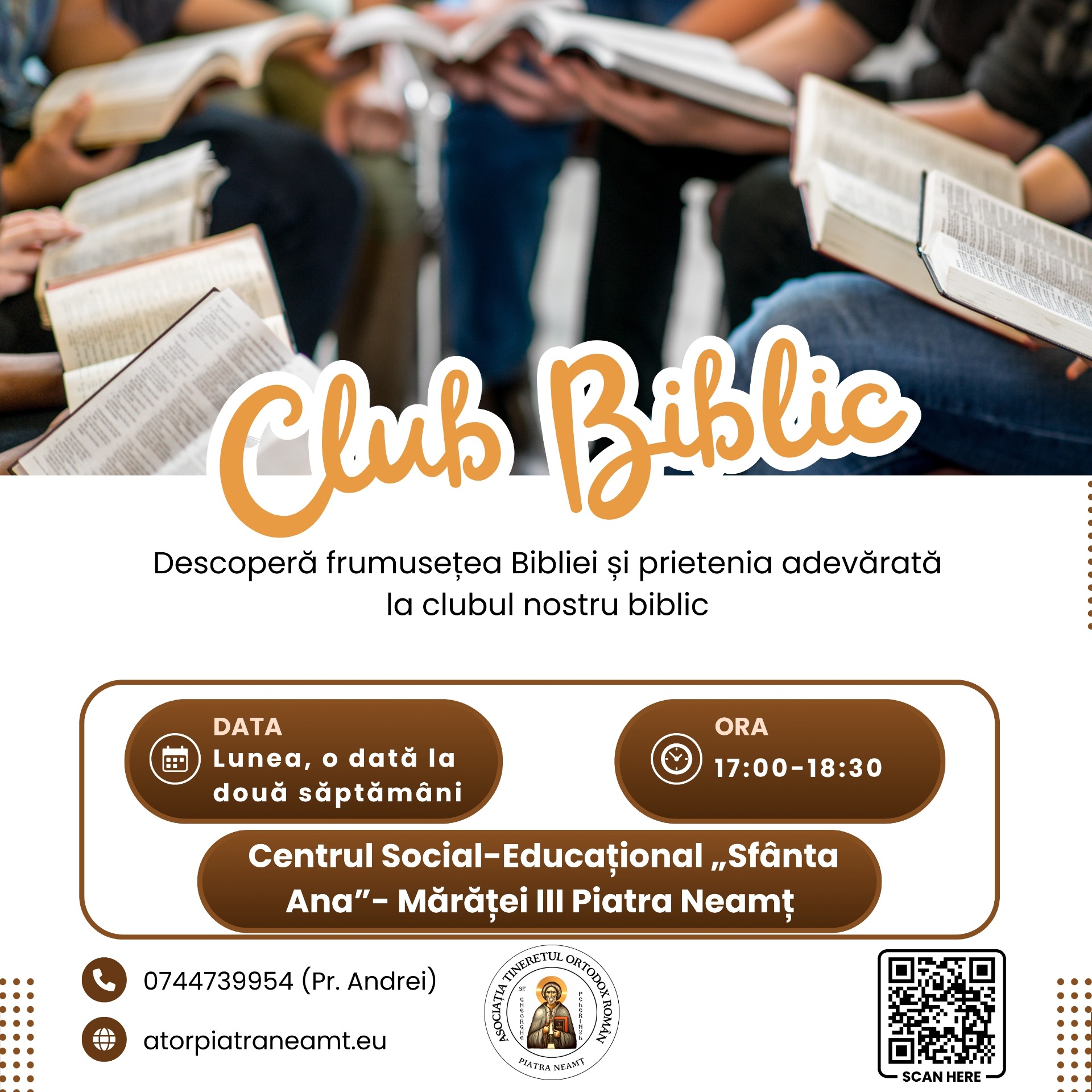 Bine ai venit la Clubul Biblic, un loc unde tinerii se adună pentru a descoperi împreună frumusețea Cuvântului lui Dumnezeu și relevanța lui pentru viața de zi cu zi. Aici nu este vorba doar de citirea Bibliei, ci de prietenie, dialog deschis, întrebări sincere și răspunsuri care aduc lumină și speranță.